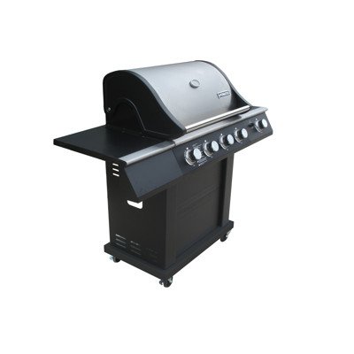 Enjoy perfectly cooked burgers, hot dogs and more with this 5-burner gas grill. With a total of 696 square inches of cooking space and 61,000 BTUs, this grill has the space and the heat needed to grill up an entire meal for your friends and family. The electronic ignition makes getting started a breeze, and the non-stick surface makes it easy to clean up when the cooking is done. The 4 casters let you easily move the entire unit around the yard.