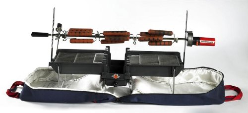 Fast starting charcoals with unique chimney effect allows for cooking in just 10 minutes. 170 square inches of cast iron cooking surface. Self-Cleaning process that saves charcoal and time with no mess. Patented Heavy Duty Snuff Out Pouch made with fire-retardant lining lets you pack up the grill while the coals are still hot. Great for camping, fishing, hunting, tailgating, dorms, and picnics. Rotisserie not included Son of Hibachi is one of the most versatile charcoal barbecuing systems for home and travel. The ingenious blast furnace concept with the chimney effect enables you to be cooking in less than 10 minutes and assures consistent heat under the grills. With 170 sq. in. of cooking surface and a convertible roasting oven, this power house barbecue can cook anything from hamburgers and hot dogs to a Chateaubriand. Whether its breakfast, lunch or dinner, when you are finished cooking this grill folds into a self-cleaning oven and self-extinguishing barbecue. Then simply insert Son of Hibachi into the Snuff Out Pouch. This pouch has a flame-retardant lining, permitting you to pack up the barbecue immediately after eating and take it with you or store it for use at your next meal. On top of that, Son of Hibachi saves the unused charcoal for later use. This saves you time and money.